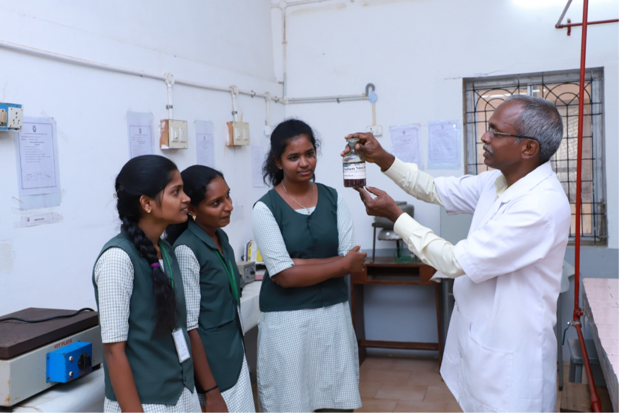 - The Pharmaceutical Chemistry department has all kinds of latest models extraction and distillation equipment. A broad range of chemicals and solvents are available to conduct academic and research programs. Safety procedures are followed strictly inside of the Pharmaceutical Chemistry laboratory. Aprons, masks and goggles are provided to the students to ensure safety.